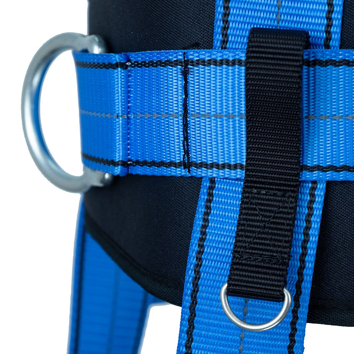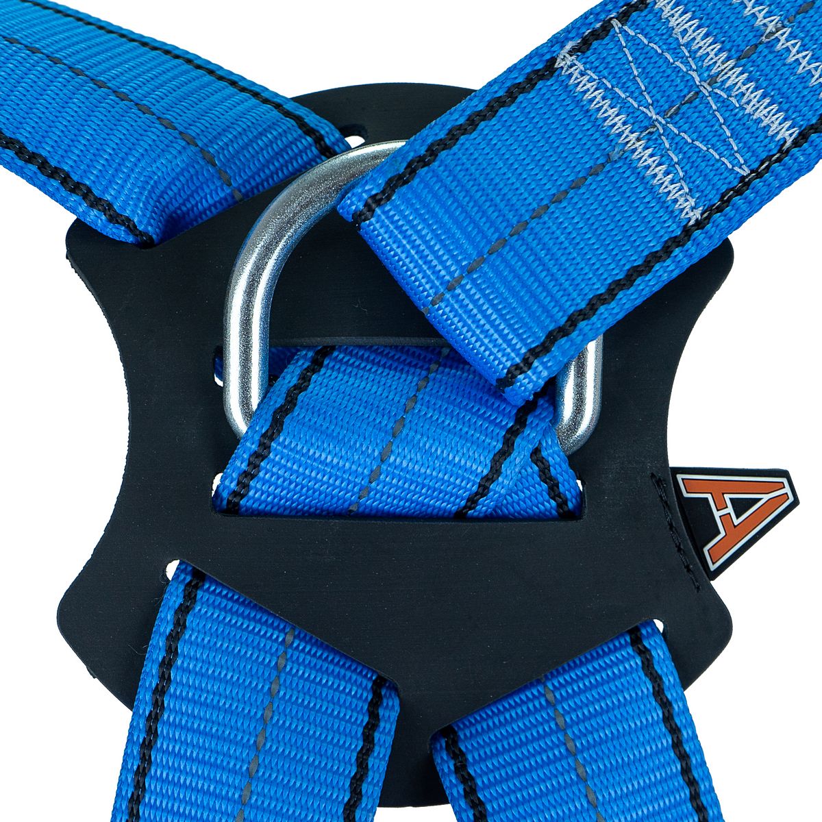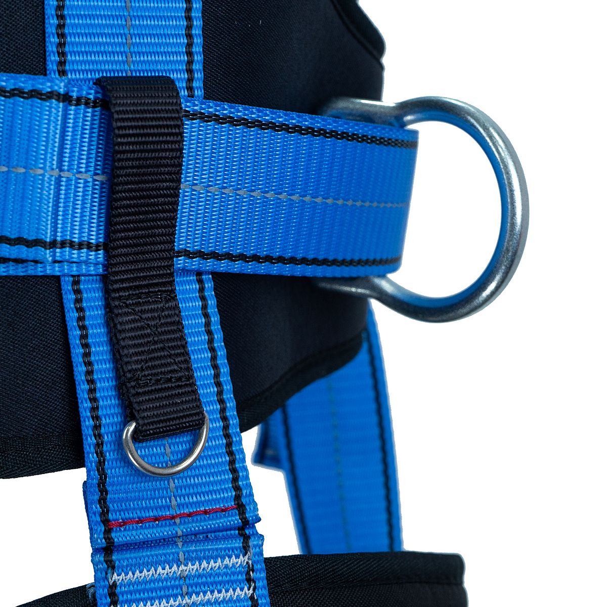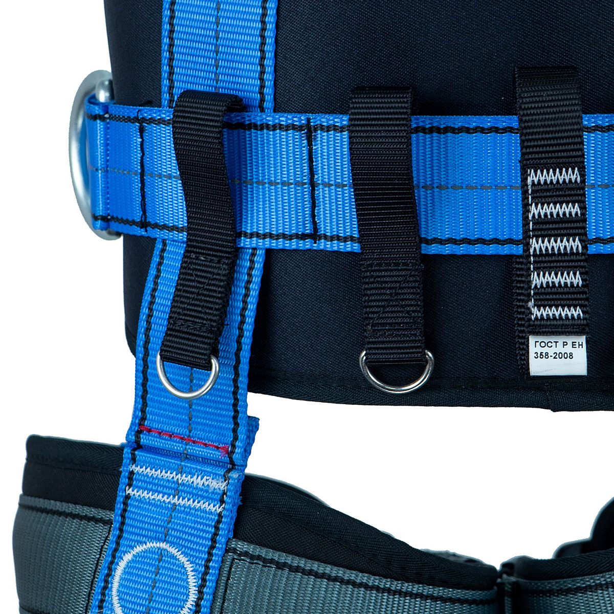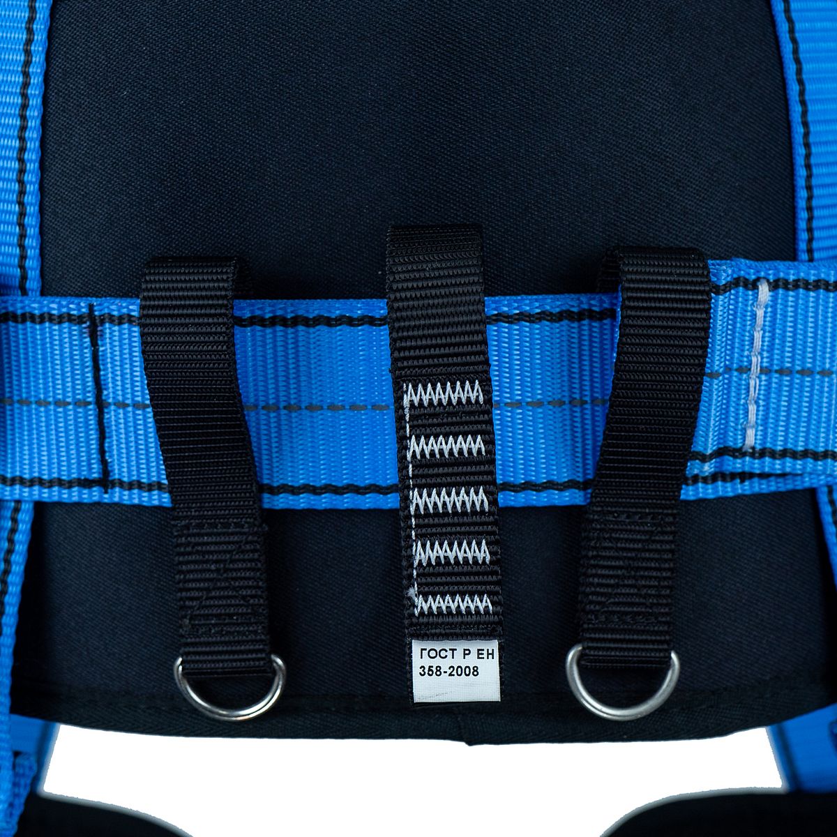 - три точки крепления страховочной подсистемы: D-образные кольца на груди и на спине, удлиняющий элемент «хлястик» на спине;