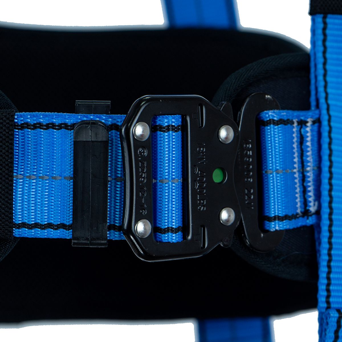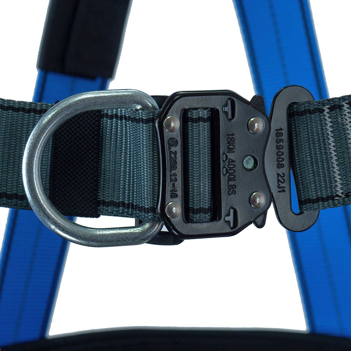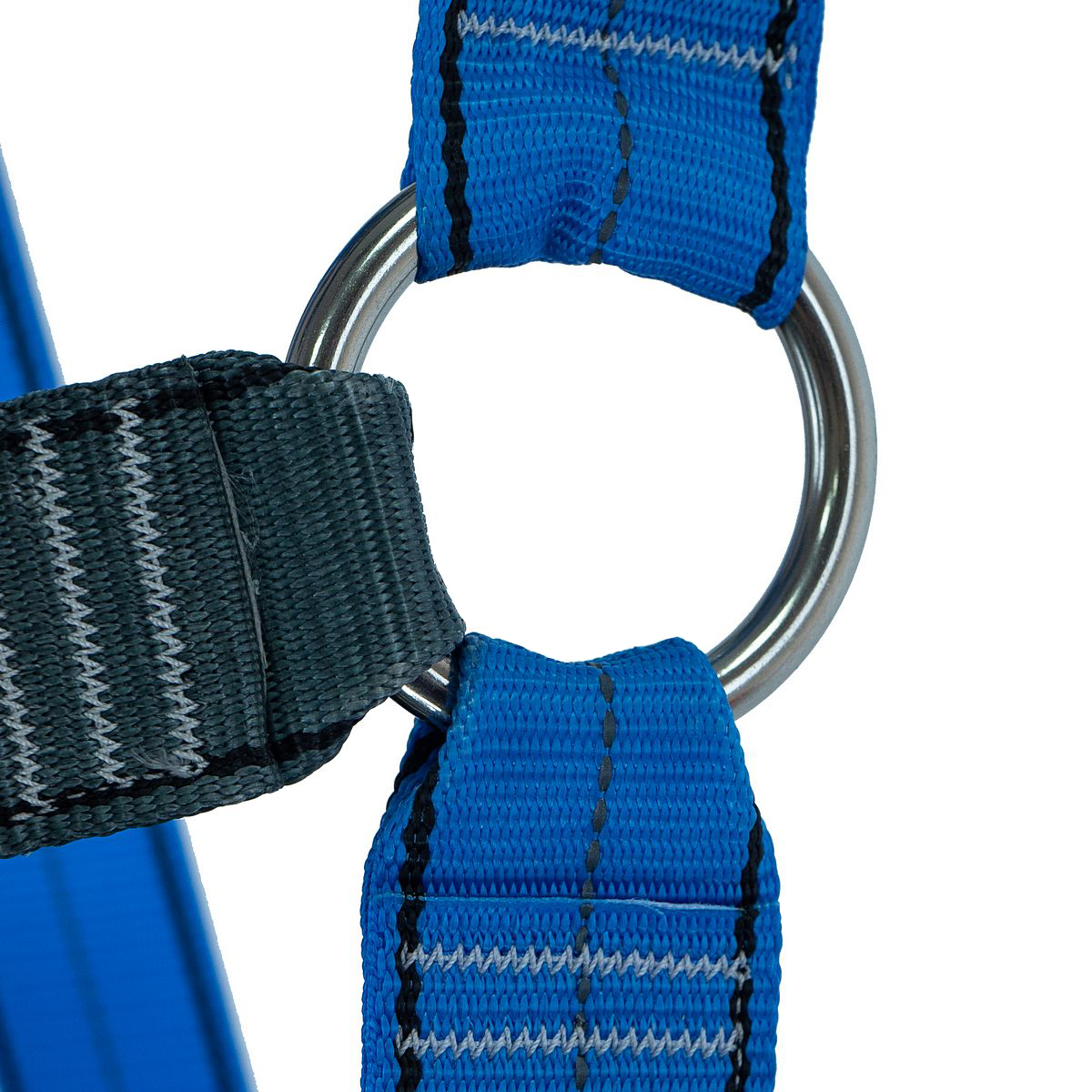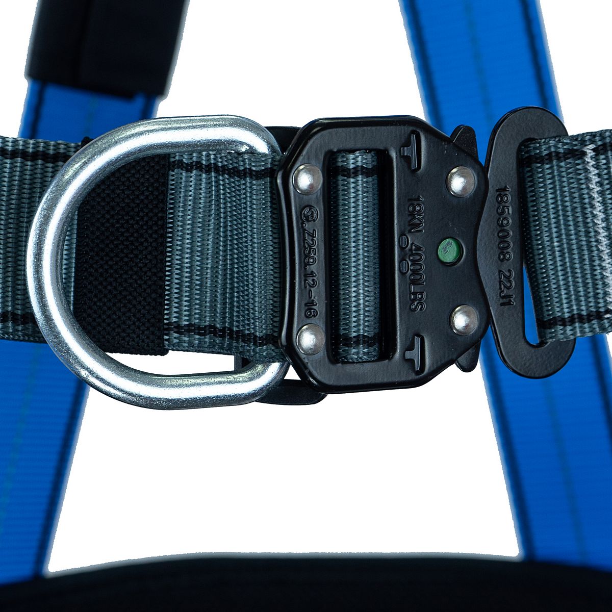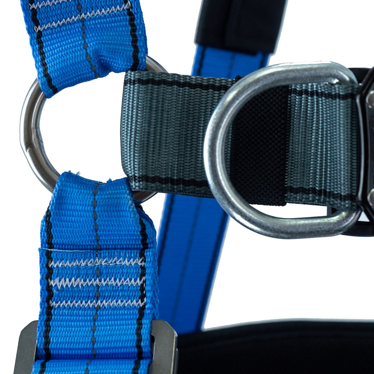 - три точки крепления страховочной подсистемы: D-образные кольца на груди и на спине, удлиняющий элемент «хлястик» на спине;