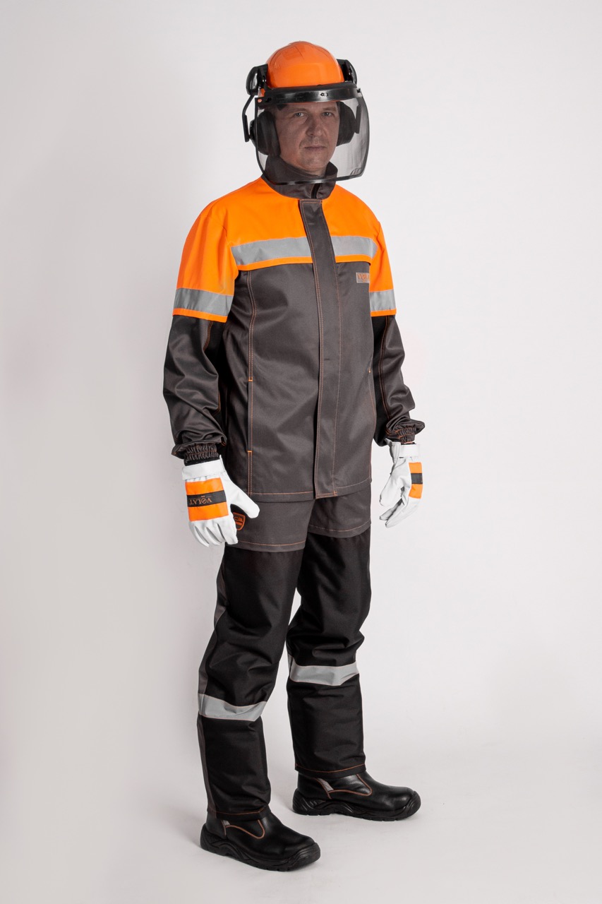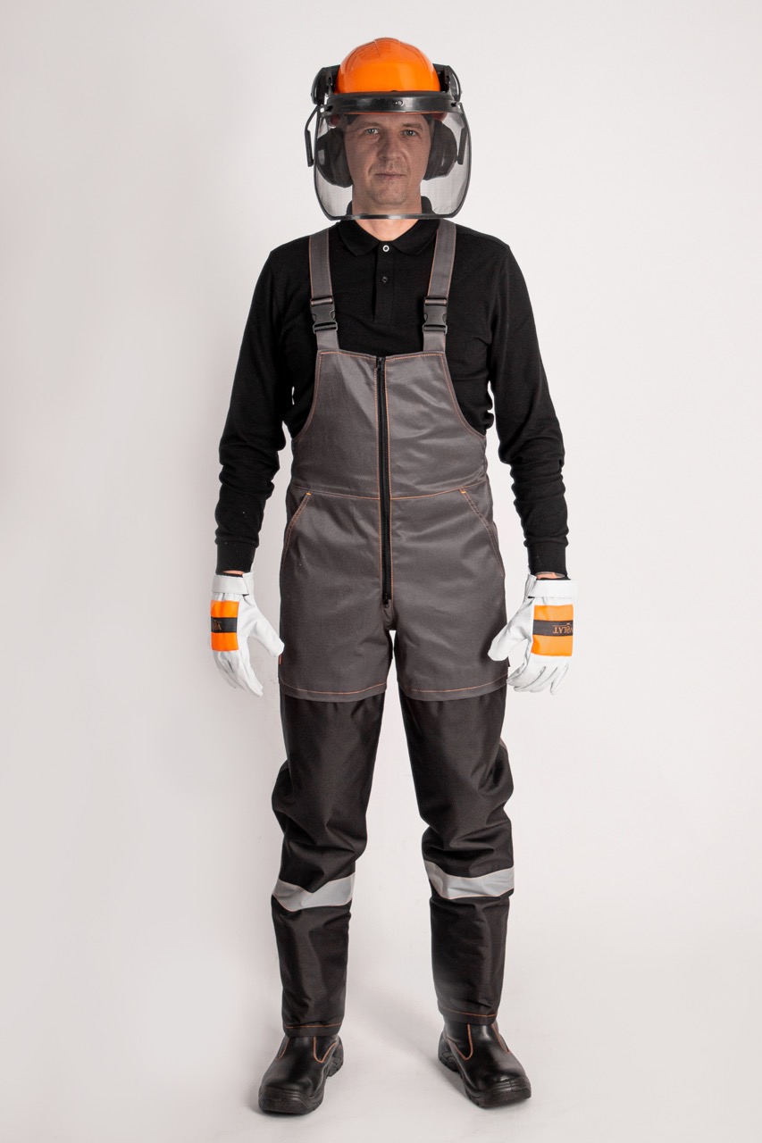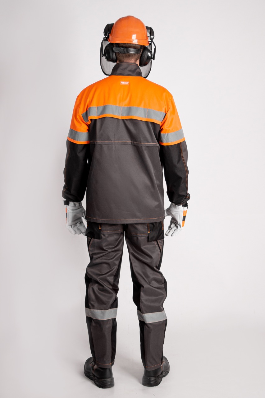 Костюм состоит из куртки и полукомбинезона. Предназанчен для работы в лесу и деревообрабатывающей промышленности. Защищает от: