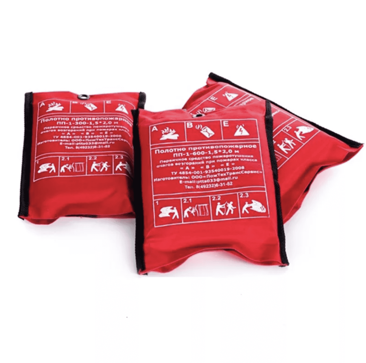 Противопожарное полотно (ПП) для локализации горения в начальной стадии пожара, тушения горящей одежды на пострадавшем, защиты горючих конструкций и оборудования при проведении огневых работ (возгорания классов А, В, Е).