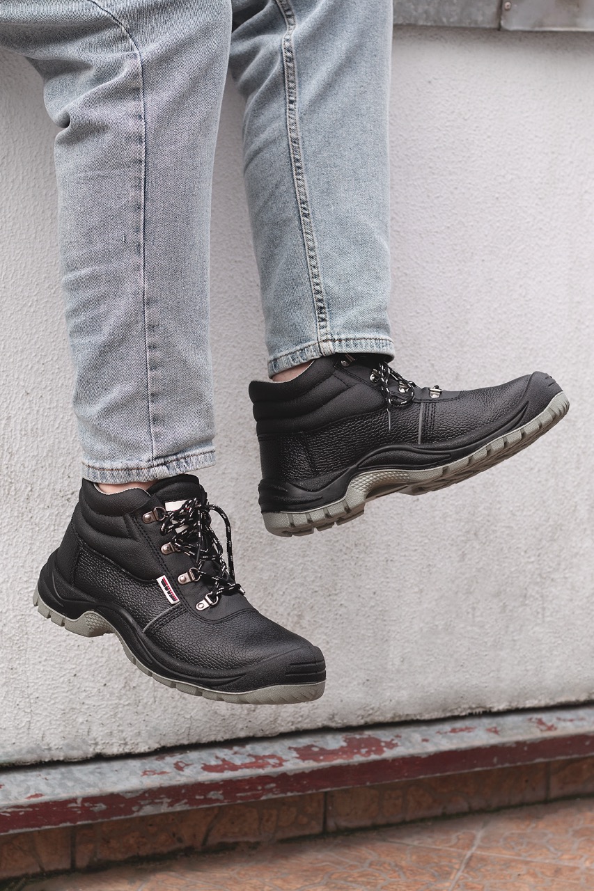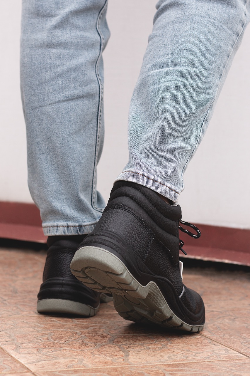 Рабочие ботинки на двухслойной ПУ/ПУ (полиуретан с нитрилом) подошве изготовлены из натуральной кожи высокого качества отделки толщиной до 2,5 мм, с пропиткой, устойчивой к воздействию агрессивных внешних факторов.
