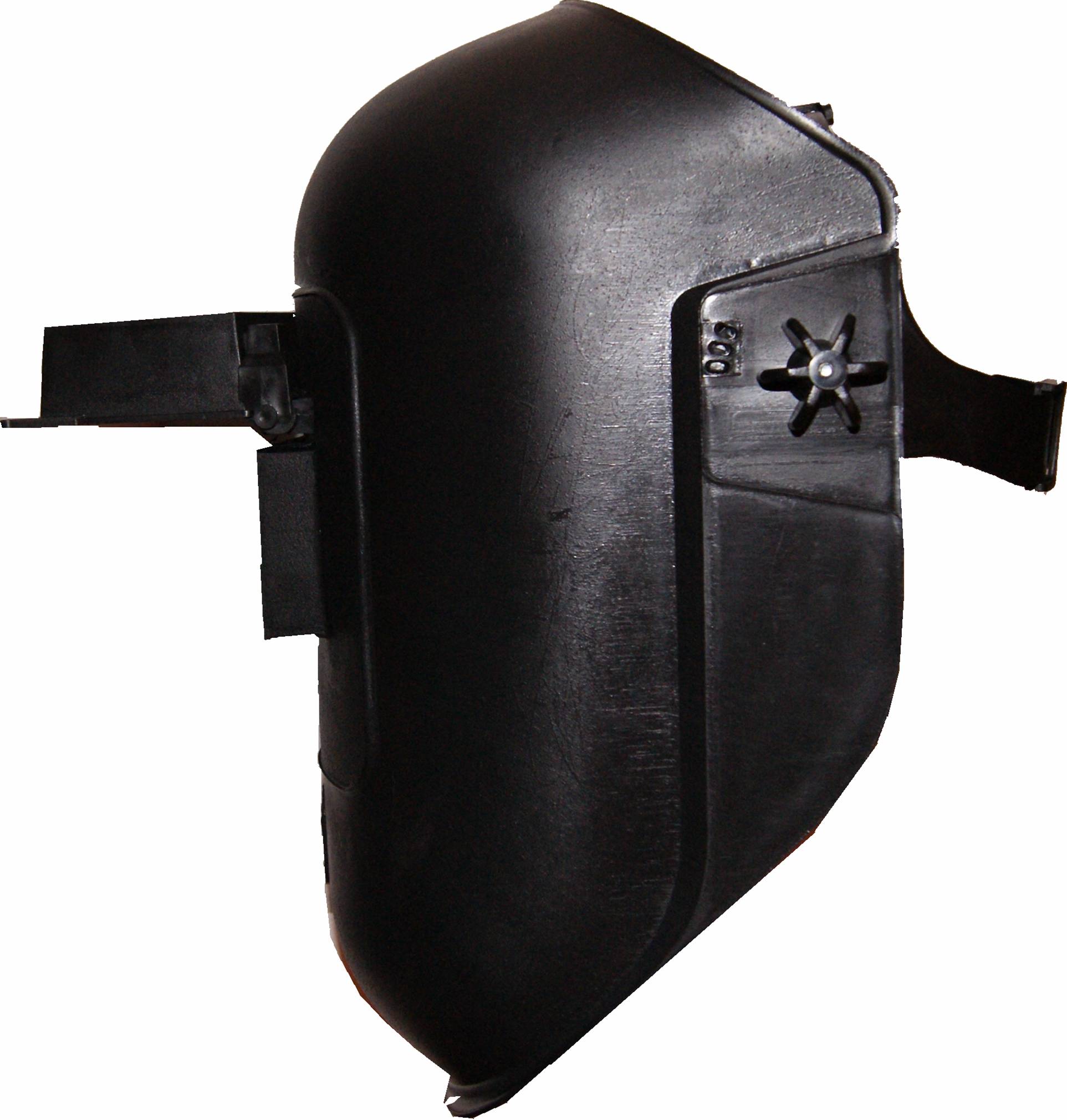 Щиток снабжен реечным наголовным креплением, которое отливается из полиэтилена на литьевых станках. Наголовное крепление обеспечивает плавное регулирование охвата головы и крепится к корпусу гайко-барашками, которые обеспечивают перемещение и фиксацию корпуса из закрытого положения в открытое и обратно без усилий. Для комфорта на внутренней части крепления наклеивается мягкая клейкая лента.