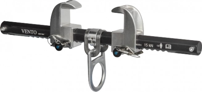 Устройство для установки на горизонтальных двутавровых балках. Регулируется по ширине в зависимости от размера балки. Подвижные скобы фиксируются с помощью специального механизма и дополнительных штифтов, исключая непроизвольное изменение ширины.