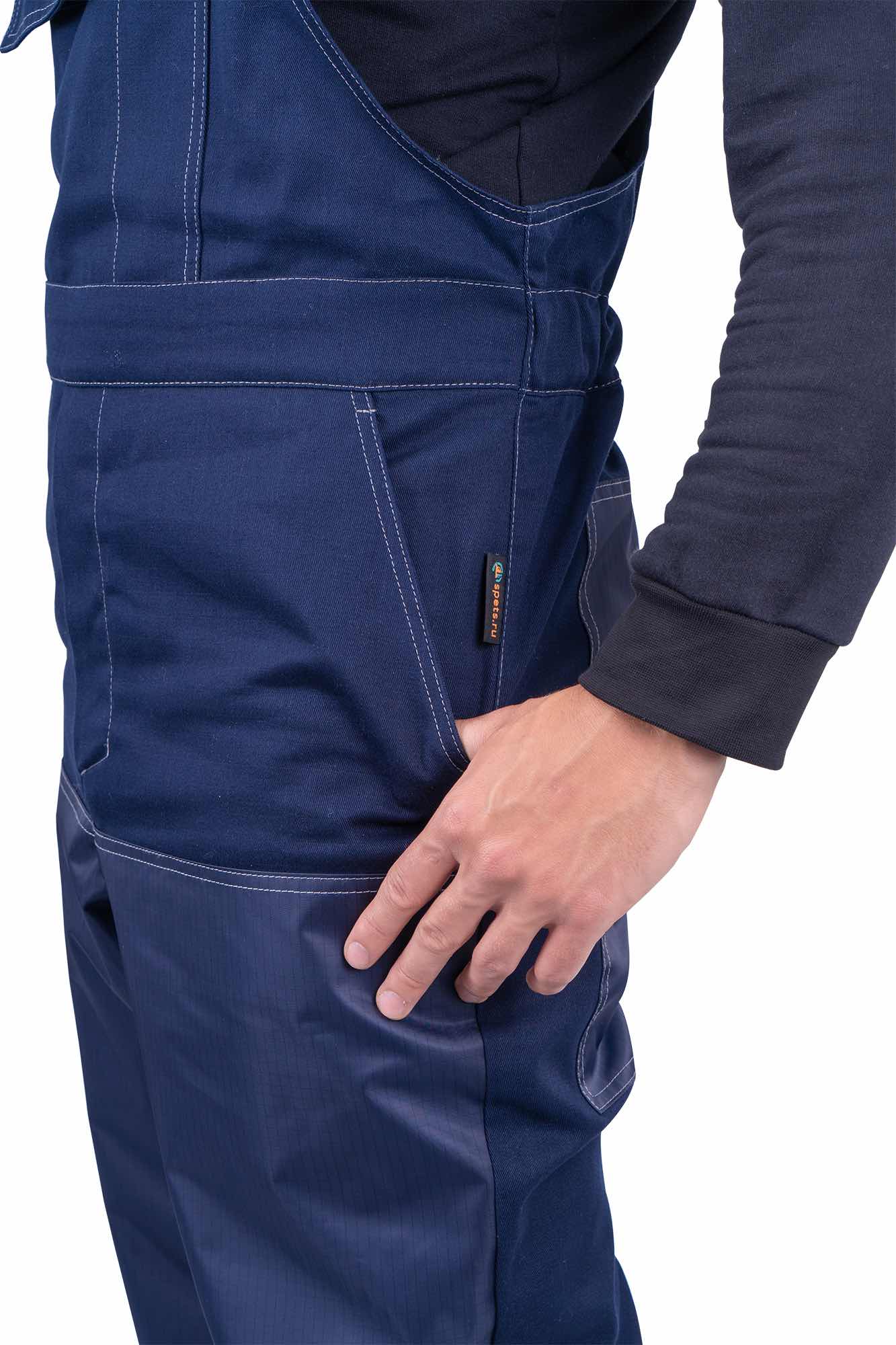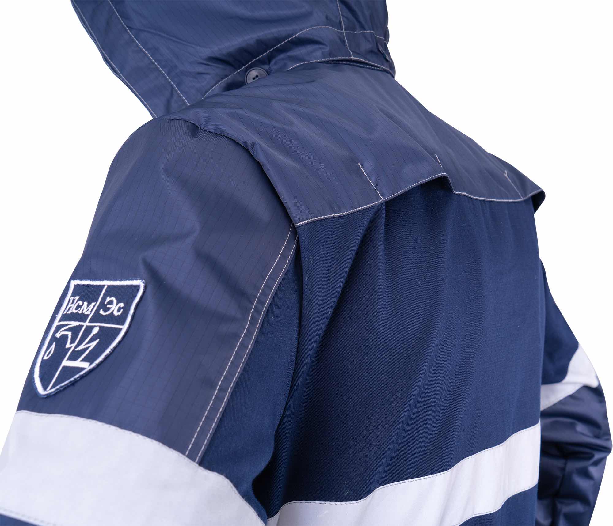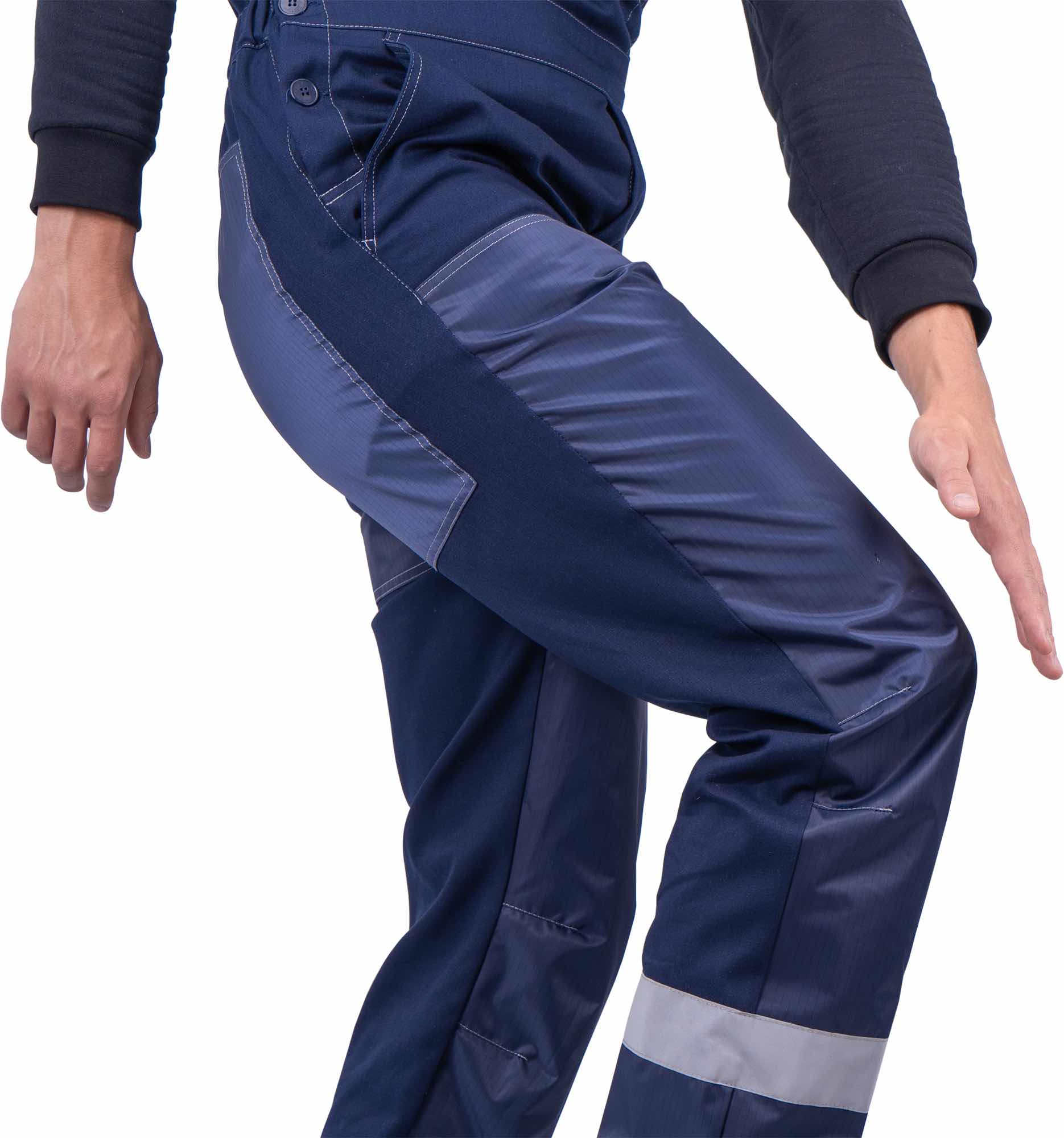 Для усиления наиболее уязвимых зон используются накладки из ткани Премьер Protect 170A, полностью состоящей из полиэстера с антистатической нитью и защитной отделкой НМВО.