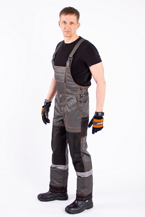 Усилительные накладки: по локтевой и передней части рукава, по передним половинкам полукомбинезона, по низу полукомбинезона, по задним половинкам в области шва сидения.