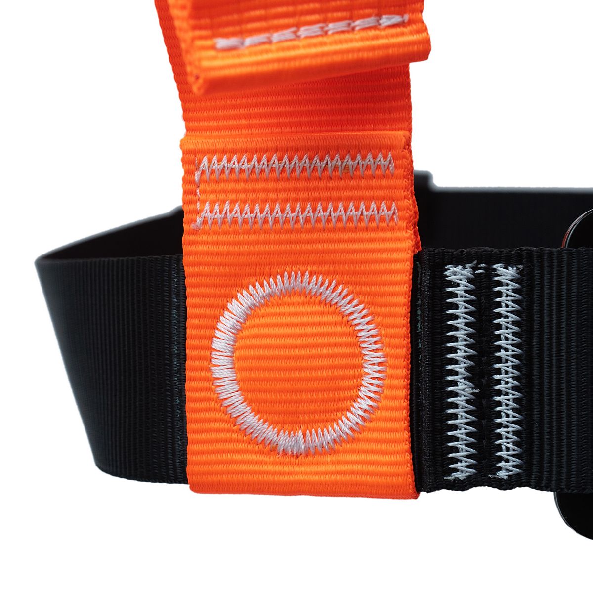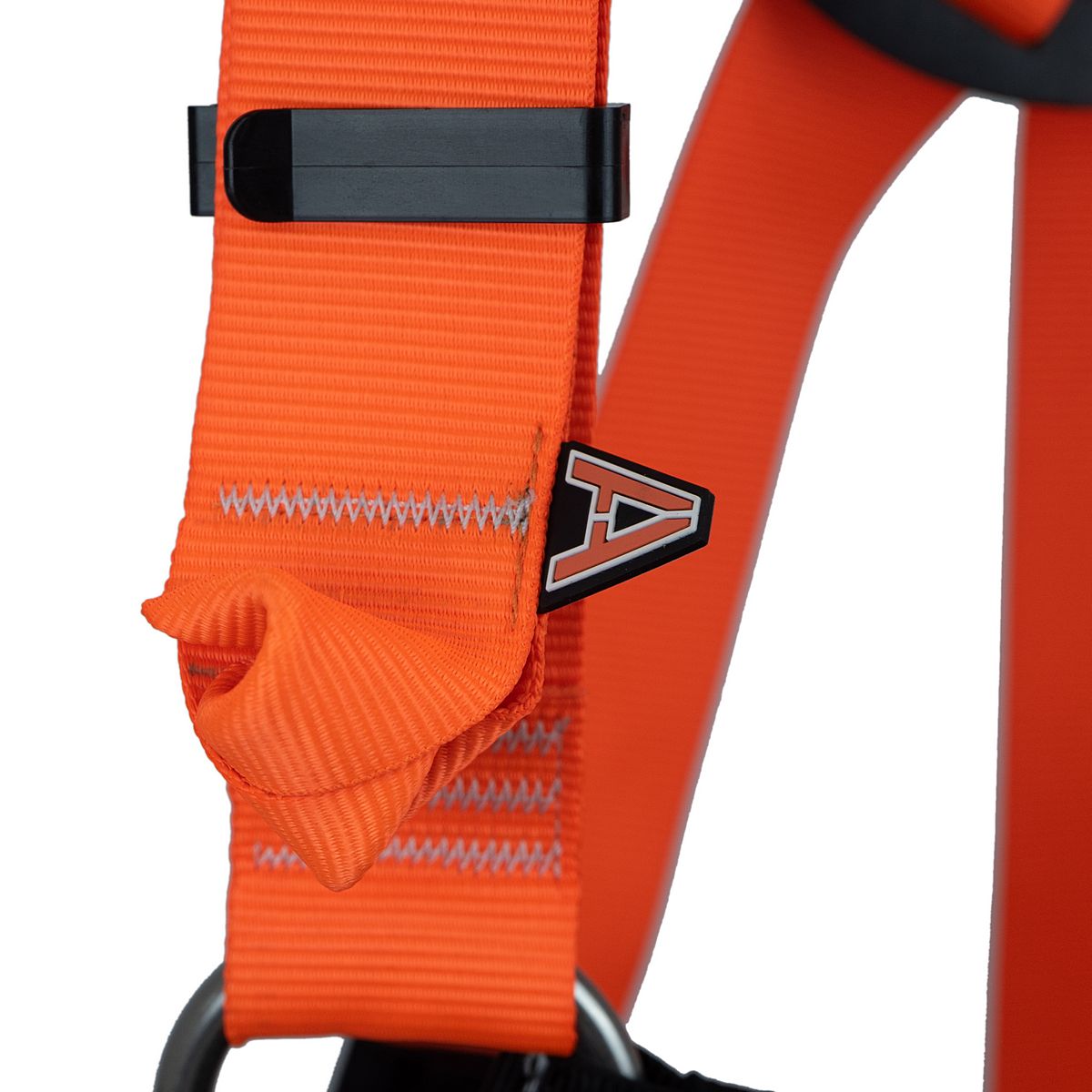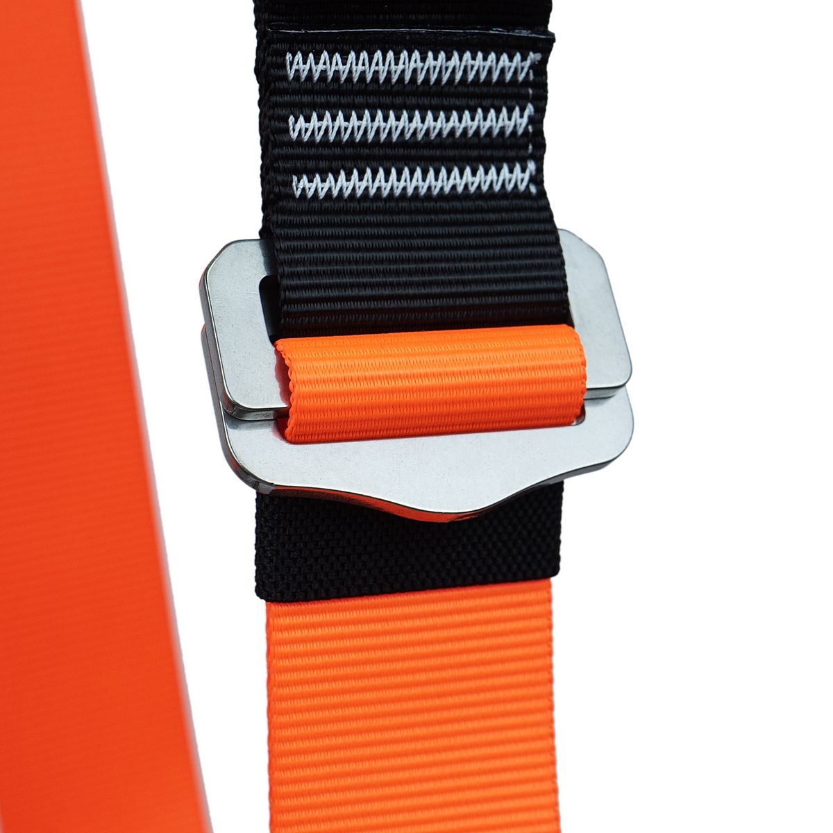 • разный цвет лямок для идентификации верха и низа привязи (флуоресцентный оранжевый - верх привязи, черный - её низ);