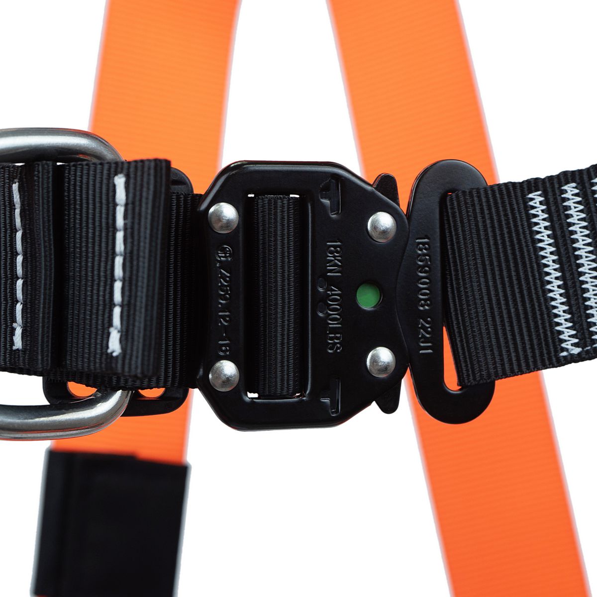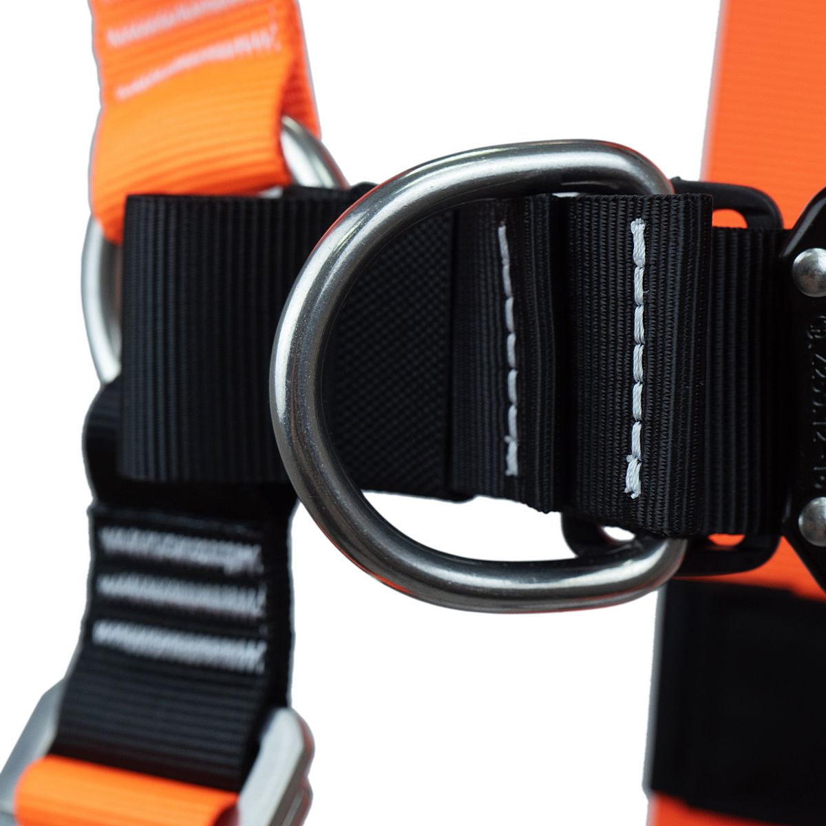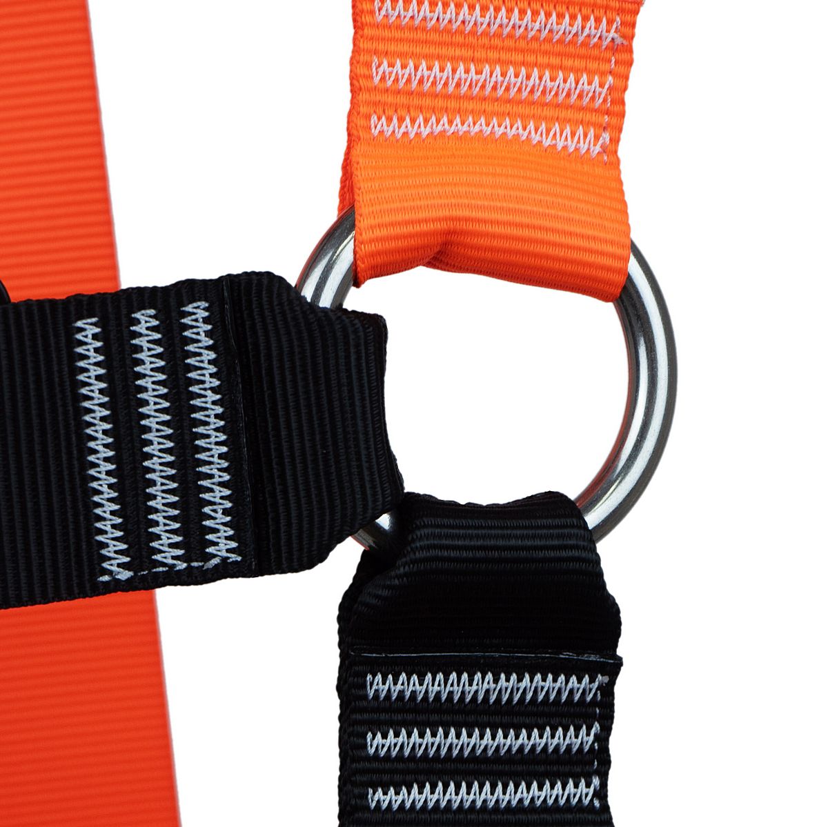 • разный цвет лямок для идентификации верха и низа привязи (флуоресцентный оранжевый - верх привязи, черный - её низ);