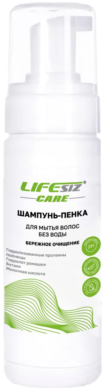 Шампунь - пенка для мытья волос без воды рекомендуется для людей с ограниченной подвижностью, пожилых и лежачих больных, когда мытье волос водой невозможно или затруднено. Не требует смывания водой. Подходит для чувствительной кожи головы, для всех типов волос.